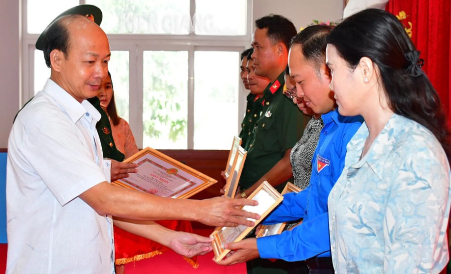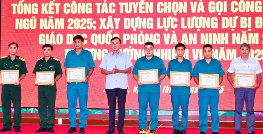 Tại hội nghị, UBND huyện An Biên tặng giấy khen 15 tập thể, 29 cá nhân có thành tích xuất sắc trong công tác tuyển chọn và gọi công dân nhập ngũ, công dân tham gia nghĩa vụ Công an nhân dân năm 2025; 7 tập thể, 14 cá nhân có thành tích xuất sắc trong công tác giáo dục quốc phòng và an ninh; 7 tập thể, 9 cá nhân có thành tích xuất sắc trong công tác xây dựng lực lượng dự bị động viên.