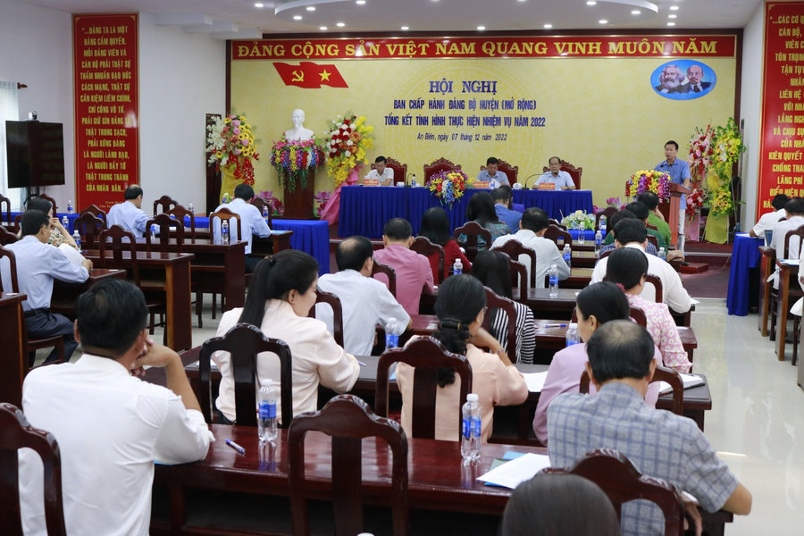 Phát biểu tại hội nghị, đồng chí Nguyễn Công Trận - Tỉnh ủy viên, Bí thư Huyện ủy, Chủ tịch Ủy ban nhân dân huyện An Biên đề nghị các cấp, các ngành trong hệ thống chính trị, tập trung tiếp tục xây dựng hệ thống chính trị ngày càng trong sạch vững mạnh. Đồng thời, huy động mọi nguồn lực thúc đẩy kinh tế của huyện phát triển; đẩy mạnh chuyển dịch cơ cấu kinh tế, đi đôi với thực hiện tốt việc tổ chức sản xuất và nuôi trồng thủy sản theo quy hoạch; tăng cường kêu gọi đầu tư vào lĩnh vực công nghiệp và dịch vụ. Đồng chí nhấn mạnh, năm 2023, huyện tập trung chỉ đạo quyết liệt, huy động sự vào cuộc mạnh mẽ của cả hệ thống chính trị và nhân dân để nâng cao chất lượng xây dựng nông thôn mới. Trong đó, tích cực vận động nhân dân tham gia bảo hiểm y tế đạt theo nghị quyết đề ra, đi đôi với kiên quyết khắc phục tình trạng ô nhiểm môi trường. Nơi nào không tạo được sự chuyển biến tích cực, rõ nét, thì người đứng đầu cấp uỷ, chính quyền chịu trách nhiệm trước cấp trên. Bên cạnh đó, trong năm 2023, huyện tiếp tục nâng cao chất lượng giáo dục - đào tạo, chăm lo tốt sức khỏe nhân dân, chú trọng phát triển con người và đảm bảo an sinh xã hội; tăng cường quốc phòng - an ninh, quan tâm lãnh đạo chặt chẽ công tác nội chính...