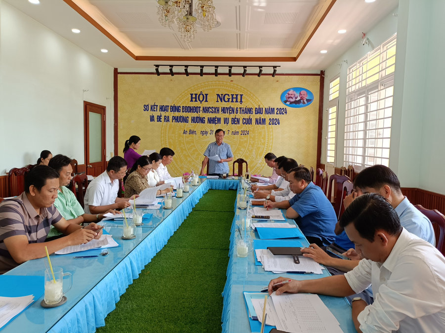 Sáng ngày 31/7/2024, Ông Nguyễn Quốc Xinh, Phó Chủ tịch UBND huyện - Trưởng Ban đại diện Hội đồng quản trị (HĐQT) Ngân hàng Chính sách xã hội (NHCSXH) huyện An Biên đã chủ trì Hội nghị sơ kết hoạt động Ban đại diện 6 tháng đầu năm và đề ra phương hướng nhiệm vụ đến cuối năm 2024.