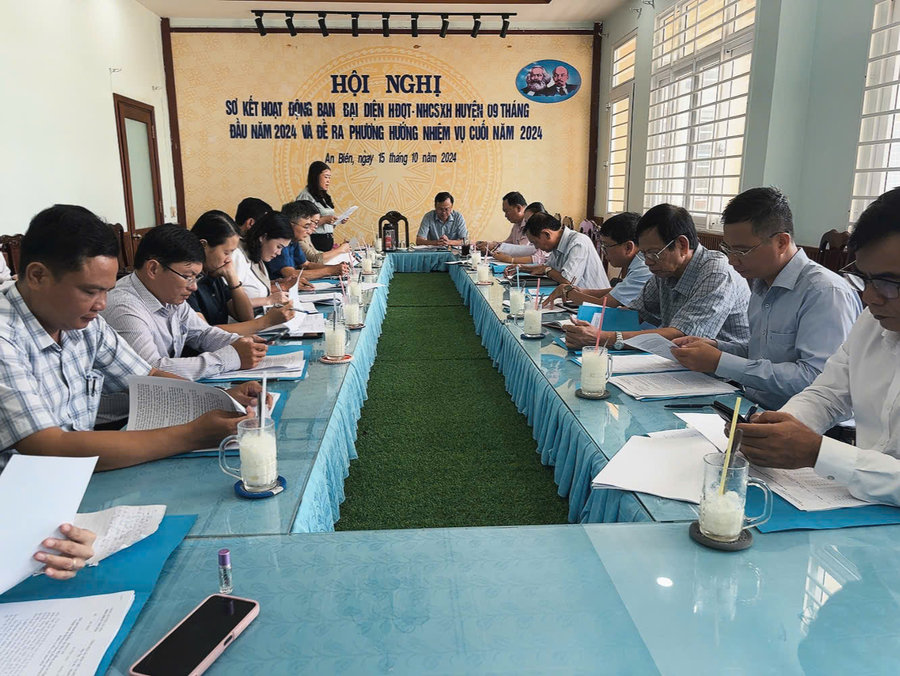 Sáng ngày 15/10/2024, Ông Nguyễn Quốc Xinh, Phó Chủ tịch UBND huyện - Trưởng Ban đại diện Hội đồng quản trị (HĐQT) Ngân hàng Chính sách xã hội (NHCSXH) huyện An Biên đã chủ trì Hội nghị sơ kết hoạt động Ban đại diện 9 tháng đầu năm và đề ra phương hướng nhiệm vụ đến cuối năm 2024.