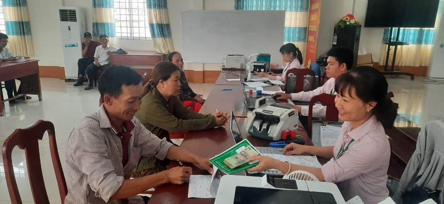 Trong 10 năm thực hiện tín dụng chính sách, đến nay trên địa bàn xã đã duy trì 4 Hội đoàn thể nhận ủy thác với NHCSXH, 22 tổ tiết kiệm và vay vốn, Tổng dư nợ đạt 47.864 triệu đồng tăng 40.276 triệu đồng so năm 2014, tỷ lệ tăng 530,7%. Tỷ lệ nợ quá hạn 0,07% (giảm 1.6% so với năm 2014) Với hơn 1.000 hộ nghèo và các đối tượng chính sách khác được vay vốn. Hoạt động tín dụng chính sách đã góp phần cho 107 hộ nghèo được vay vốn tăng gia sản xuất vươn lên thoát nghèo; thu hút, tạo việc làm cho 82 lao động có việc làm ổn định; giúp cho 10 học sinh, sinh viên thuộc hộ nghèo, cận nghèo và có hoàn cảnh khó khăn được vay vốn học tập; cho vay xây dựng, sửa chữa trên 443 công trình nước sạch và vệ sinh môi trường nông thôn; trên 44 căn nhà đối tượng hộ nghèo về nhà ở theo Quyết định 167, 33 của Chính phủ.