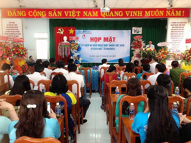 Tại buổi họp mặt, đại biểu được nghe Bác sĩ Huỳnh Đức Hòa, Giám đốc Trung Tâm Y Tế huyện đọc diễn văn ôn lại truyền thống 68 năm ngày thầy thuốc Việt Nam (27/2/1955 – 27/2/2023). Phát huy truyền thống vẽ vang của thầy thuốc VN, Ngành Y Tế huyện An Biên luôn nỗ lực phấn đấu thực hiện đáp ứng tốt yêu cầu bảo vệ, chăm sóc và nâng cao sức khỏe của nhân dân. Hiện nay, nguồn nhân lực ngành y tế huyện An Biên có trên 200 người, có trình độ chuyên môn đảm bảo thực hiện công tác chăm sóc sức khỏe nhân dân. Bên cạnh đó, mạng lưới y tế cơ sở tiếp tục được cũng cố và ngày càng hoàn thiện, 9/9 trạm y tế xã, thị trấn đạt chuẩn quốc gia.