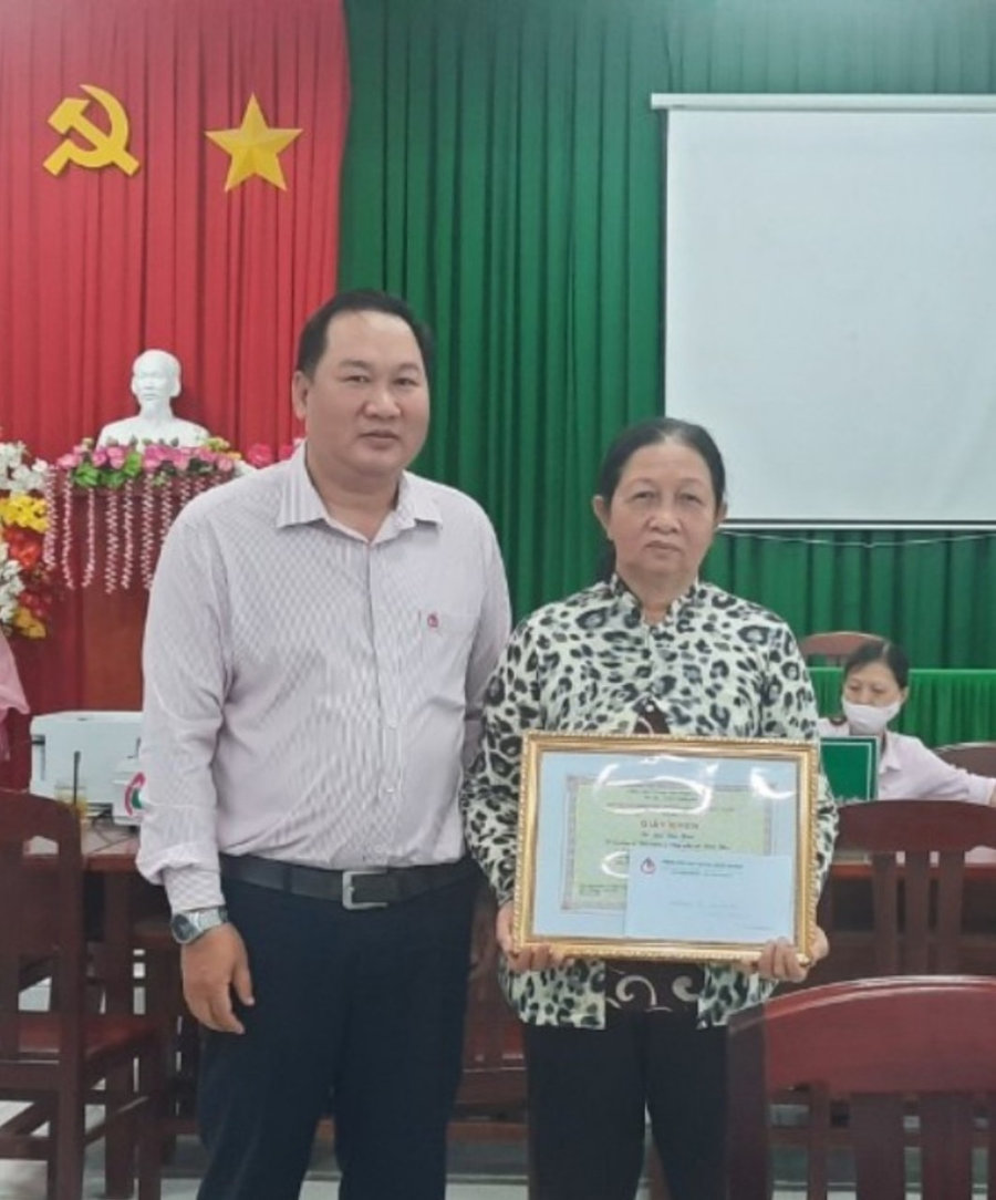Với những thành tích đạt được trong thời gian qua, chị Lưu Kim Hoa vinh dự được UBND huyện An Biên khen thưởng cá nhân có thành tích tiêu biểu trong hoạt động tính dụng chính sách xã hội nhân Hội nghị Tổng kết 20 năm triển khai thực hiện Nghị định số 78/2002/NĐ-CP của Chính phủ trên địa bàn huyện An Biên và được Chủ tịch Hội đồng quản trị NHCSXH tặng Giấy khen có thành tích đóng góp trong hoạt động NHCSXH năm 2022./.