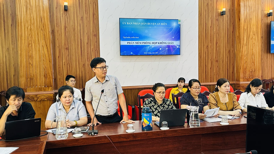 Sáng ngày 23/01/2024 Sở Thông tin và Truyền thông tỉnh Kiên Giang phối hợp với UBND huyện An Biên tổ chức tập huấn sử dụng phần mềm phòng họp không giấy. Tham dự có đồng chí Trần Minh Sao PCT HĐND huyện tham dự, cùng tham có các đại biểu HĐND huyện và các ngành cấp huyện.